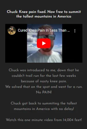Chuck was introduced to me, down that he couldn't trail run for the last few weeks because of nasty knee pain. We solved that on the spot and went for a run. No PAIN!